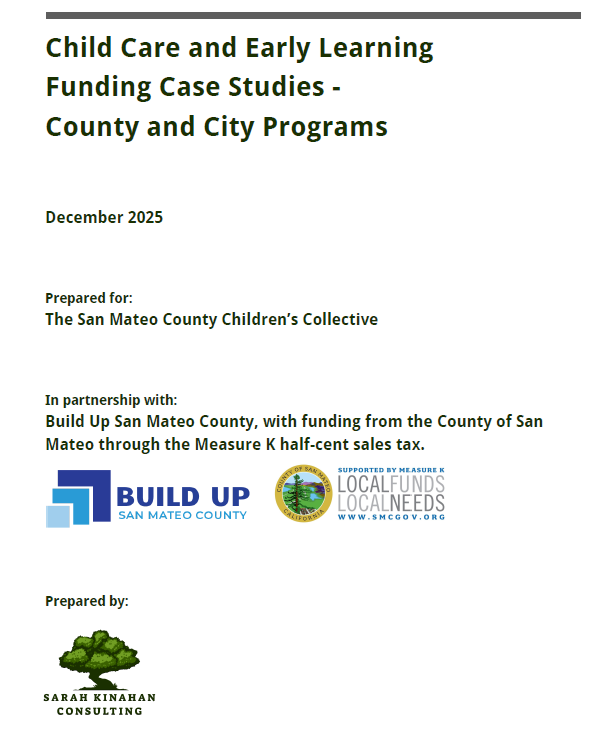 Build Up San Mateo County Reports include our San Mateo County Early Childhood Climate Action Plan. Recently, we partnered with The Children’s Collective for a report on Child Care and Early Learning Fiscal Mapping & Cost Modeling and Funding Case Studies in County and City Programs.